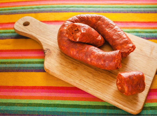 Salchicha picante hecha con carne de cerdo picada y una mezcla de chiles secos, ajo, vinagre y especias. Sirve desde para desayunar hasta para hacer tacos.